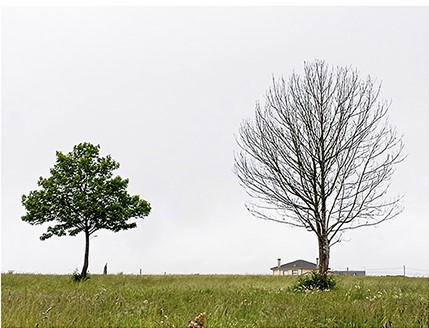 El alberge Edreira está en el borde sur de O Pedrusco. Me planto en su ventanal Y fotografío el prado lleno con verdor del pastizal no domesticado. En el tramo que recién terminamos, me crucé con una epifanía visual, desde una colina, un árbol seco, por el verano o por la vida, al lado de otro árbol, verde vital. Tal vez son padre e hijo y hacen el Camino también, pensé. Empuñe mi móvil y click, click. Luego de consumir la cena que prepara Samuel en la cocina colectiva del albergue, me acuesto. Una familia oriental ocupa las dos literas más cercanas a la nuestra. Una de las mujeres sentada al lado de la cama, se maquilla. La Observo en horizontal. Me viene a la memoria una geisha o Naoko, el personaje femenino de Tokio Blues, la novela de Murakami. Y desde mi lecho la fotografío. Después duermo como extasiado por el aroma de las flores moradas de lavanda al borde del camino. Solamente nos quedan 18 kilómetros para llegar a Santiago de Compostela.
