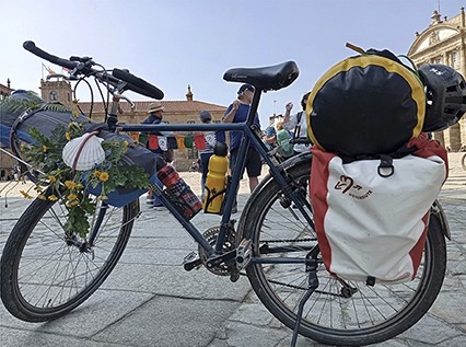 Vuelvo al presente observo una bicicleta con todo el equipaje del viajero y muchas flores entrelazadas en su estructura. Abrazo a mi hijo y suelto la confesión ajada que me aturde, hijo la noche cuando me indigesté en el primer albergue, estaba decidido a regresar a Madrid al otro día. Me sentía terriblemente vapuleado por el vómito. No te había mencionado nada hasta llegar a la meta porque temía volver a sentirme así. Samuel se ríe a carcajada, Habrías regresado solo, porque el camino de Santiago lo hacía porque lo hacía. Y volvimos a abrazarnos.