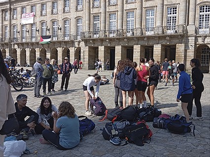Anoche descansamos en el mismo dormitorio del alberge con dieciocho caminantes en nueve literas. Después de ducharnos salimos a la plaza del pueblo a mirar la ciudad. Nos sentados en un muro. Una mujer levanta la mano y nos saluda. Se acerca. Es Kerry. Australiana, docente. Viene desde el inicio del camino. No es brasileña Conversa con mi hijo en inglés. Nos invita unos helados. Lame la crema azucarada. Bromea. Con su risa desenfadada, reafirma su promesa, pero sin garantía. No la volvimos a ver.