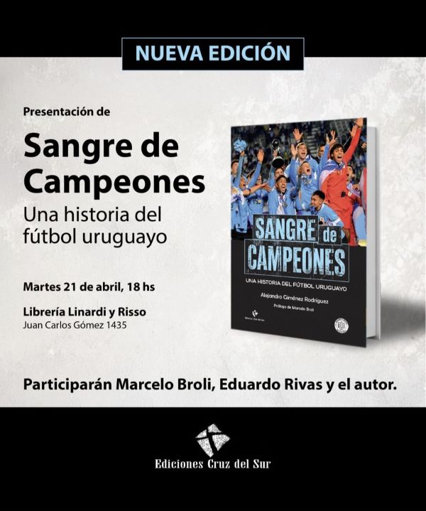 El próximo martes 21 de abril se presentará la nueva edición del libro "Sangre de campeones - Una historia del fútbol uruguayo", de Alejandro Giménez Rodríguez, colaborador permanente de CONTRATAPA.